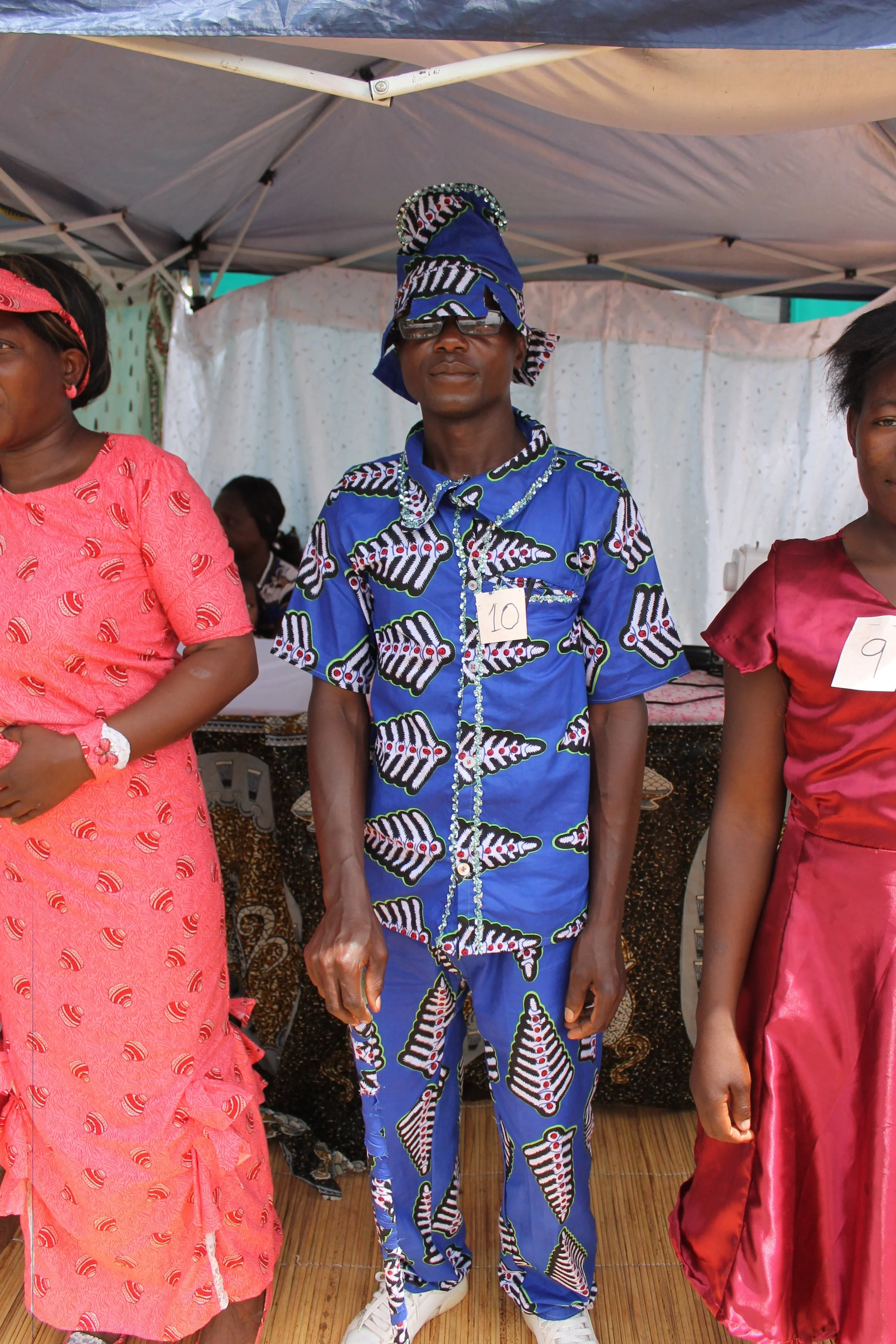 Our only male graduate, Aaron, receives thunderous applause, cheering, and shouting for this incredible chitenge suit, complete with sequin trim and a matching cane + hat combo.